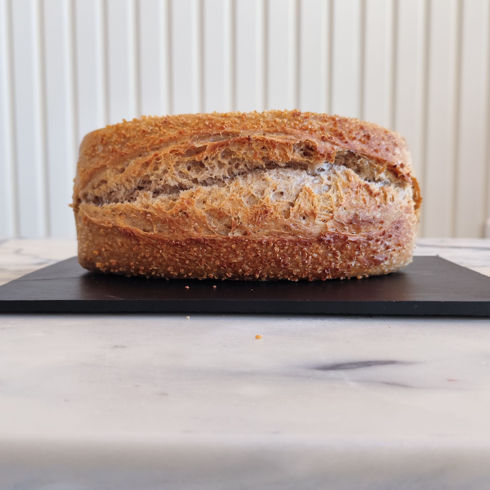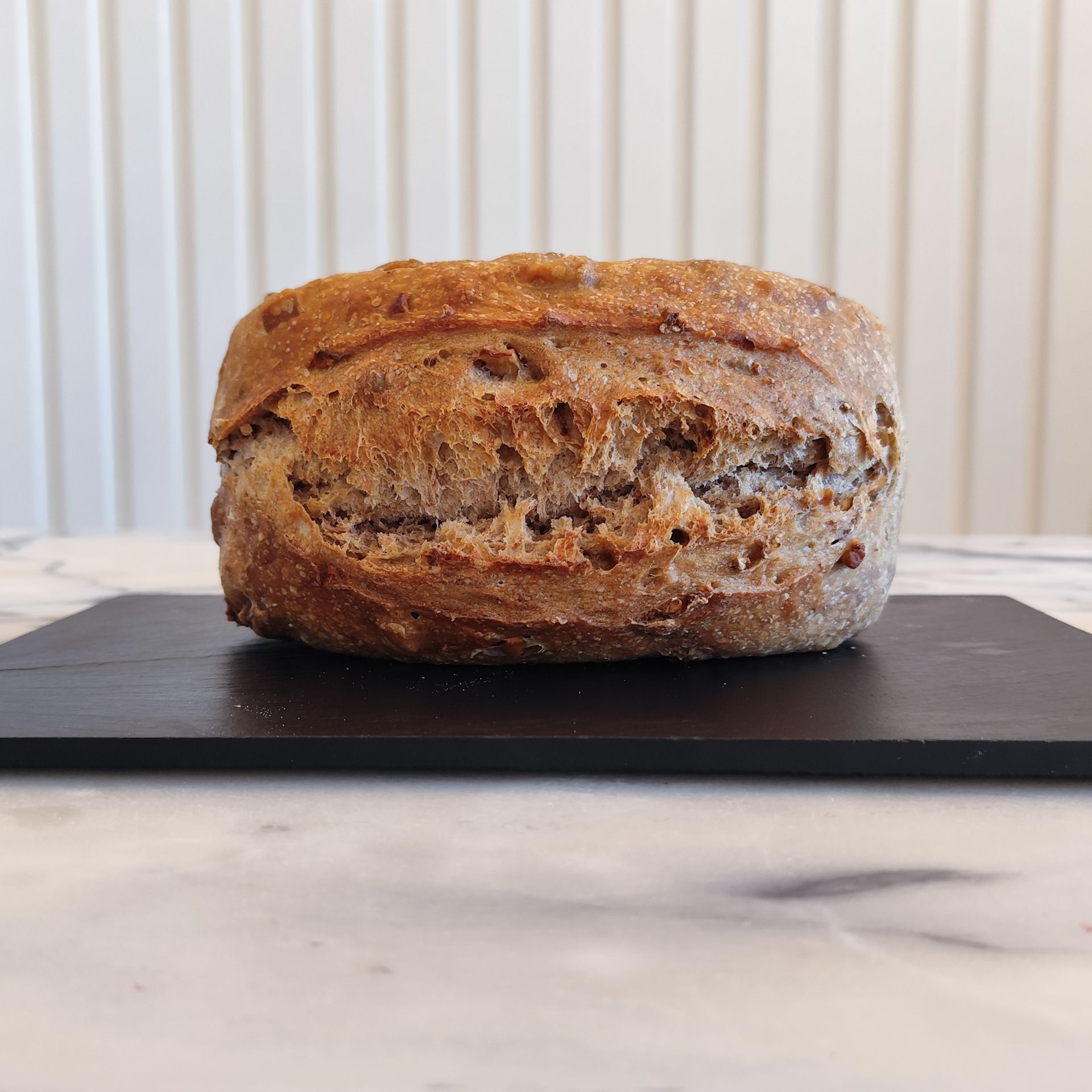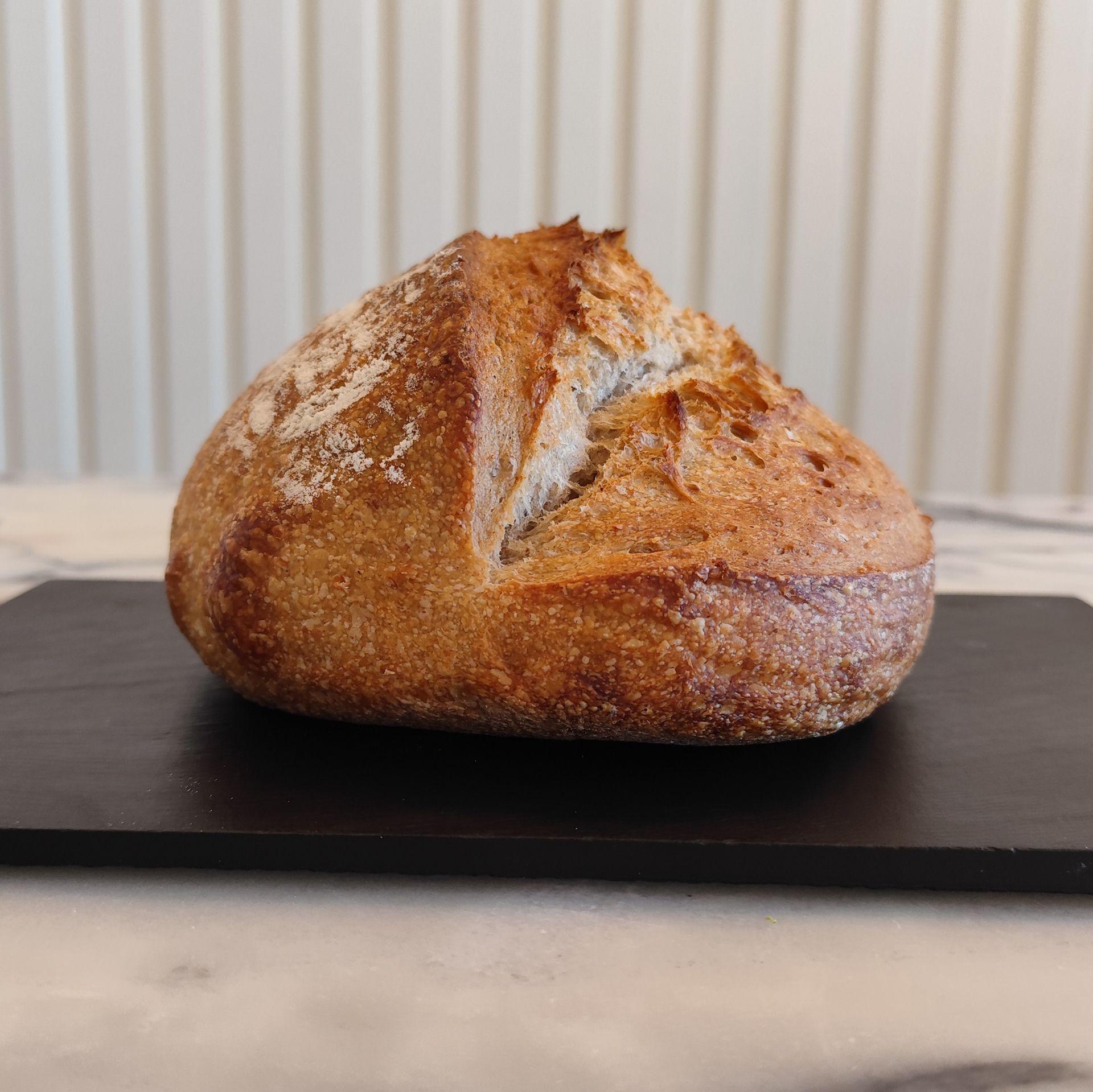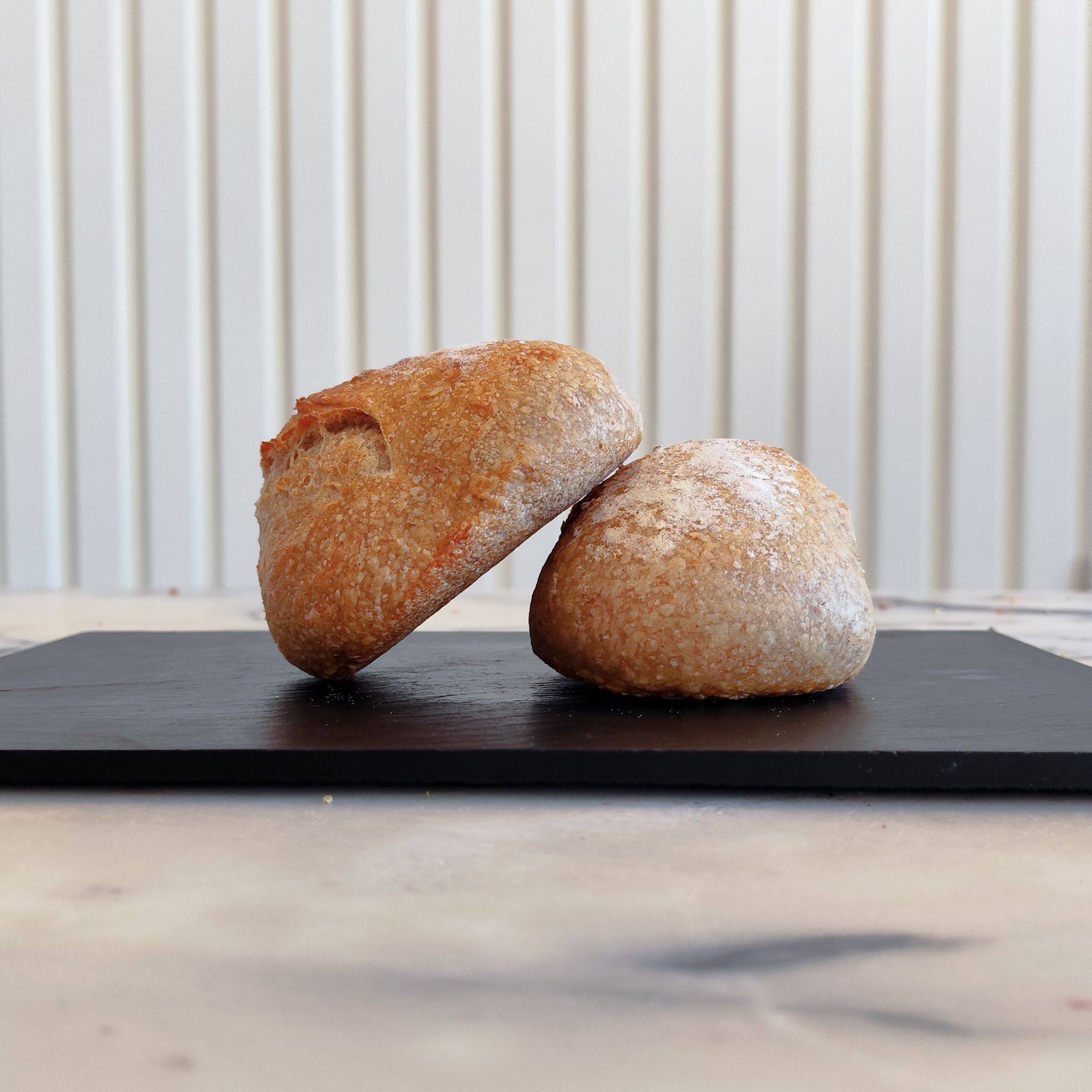 Todos os nossos pães são de massa mãe, com fermentação lenta a frio e farinhas moídas em mó de pedra.
